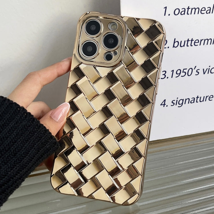 Caja del Teléfono para iPhone 13 Pro Woven Grid 3D Galvanoplastia Grabado Láser (Oro)