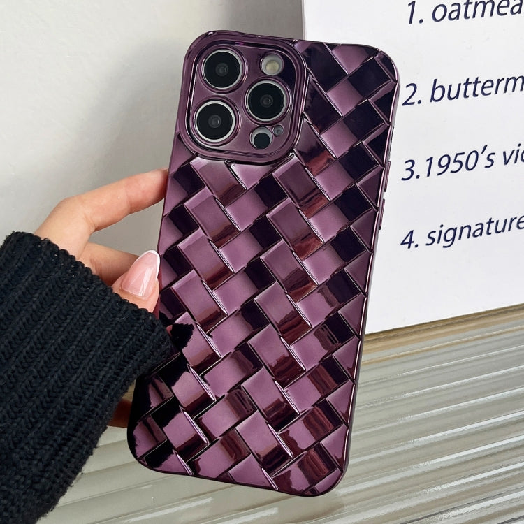 Caja del Teléfono para iPhone 13 Pro Woven Grid 3D Galvanoplastia Grabado Láser (Púrpura)