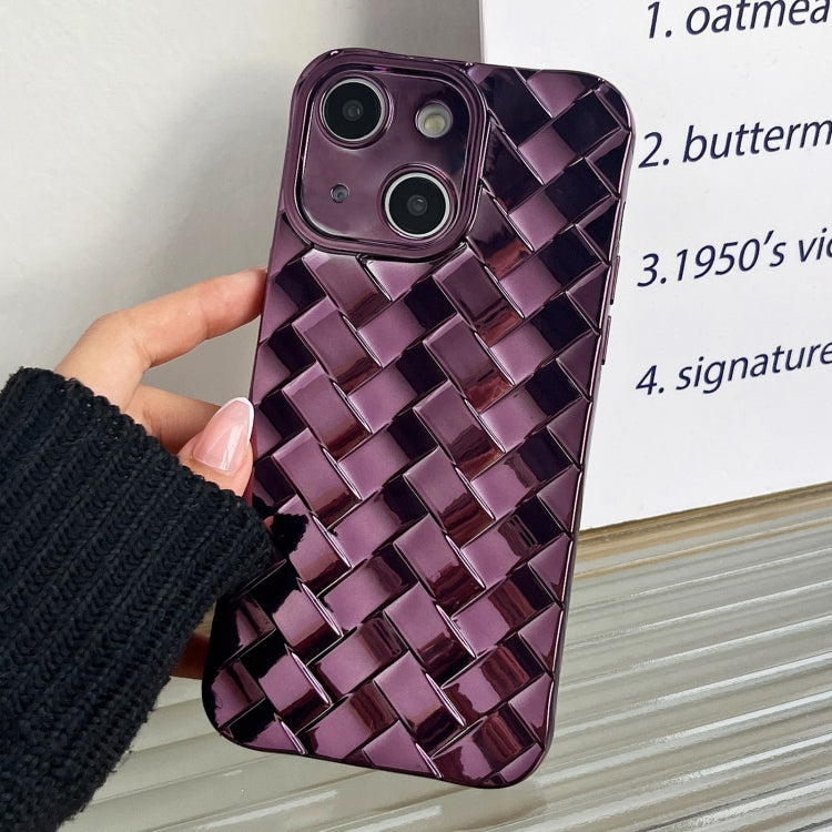 Caja del Teléfono para iPhone 13 Woven Grid 3D Galvanoplastia Grabado Láser (Púrpura)
