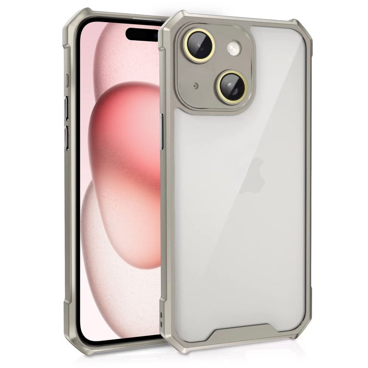 Estuche Acrílico para iPhone 15 a Prueba de Golpes con Película de Vidrio para Lentes (Gris)