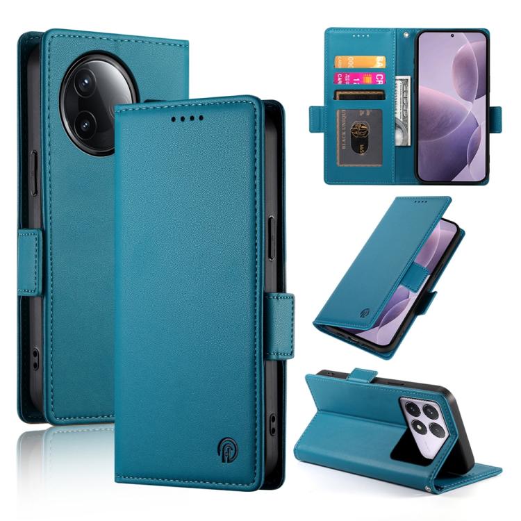 Funda de cuero con cremallera y ranura para tarjetas para Redmi K80/K80 Pro (azul)