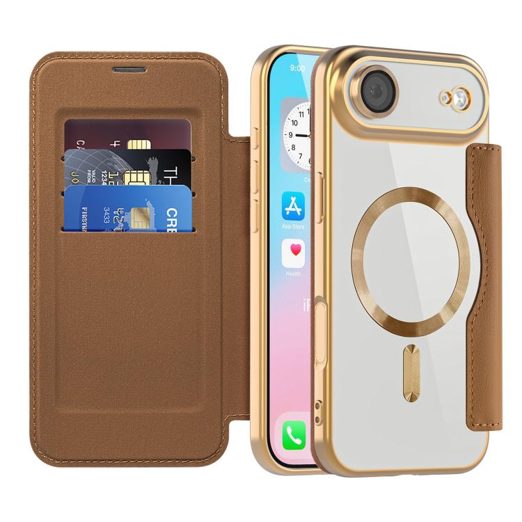 Funda de cuero Kalebol Flip Card Slot MagSafe para iPhone 17 (marrón)