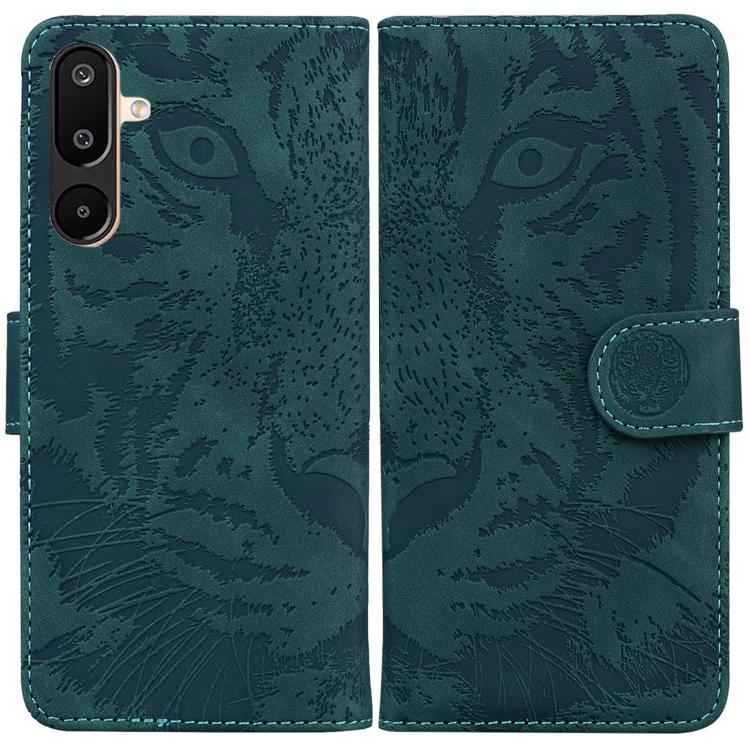Funda de piel con relieve de tigre para Samsung Galaxy M16 5G / F16 5G / M36 5G (verde)