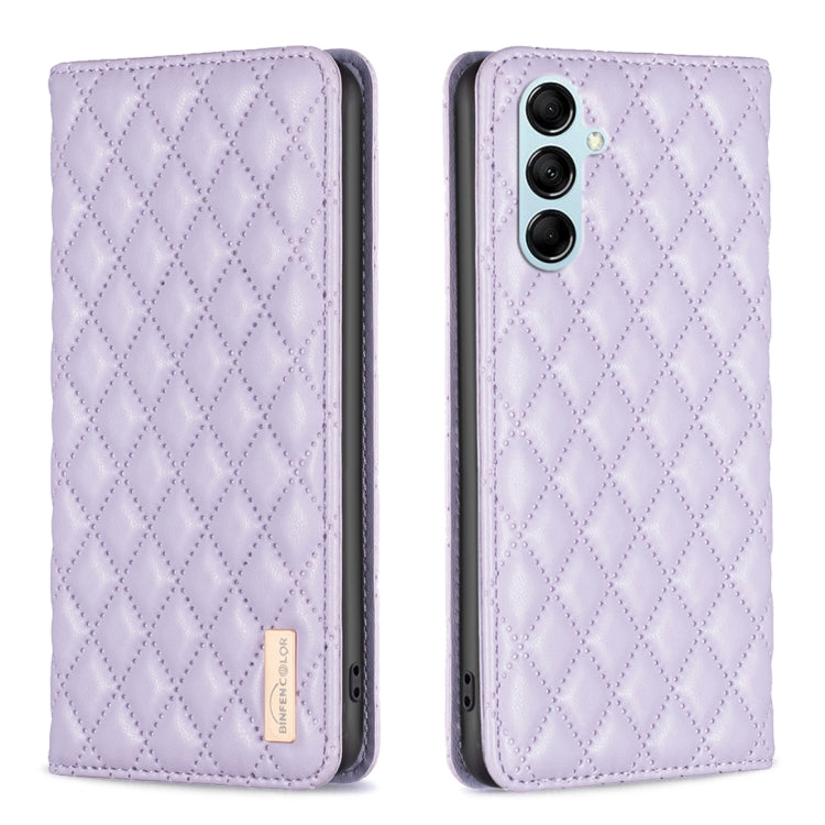Para Samsung Galaxy M14 5G Diamond Lattice Magnetic Leather Flip Phone Case (Púrpura)