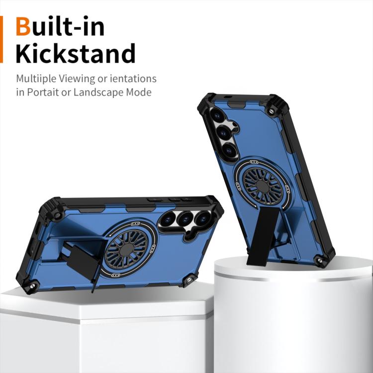 Funda MagSafe para Samsung Galaxy S24+ 5G, a prueba de golpes, con soporte metálico y eje (azul)