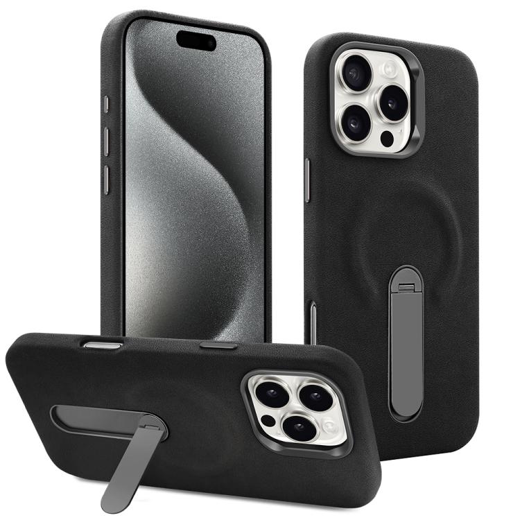 Funda VIETAO de piel sintética MagSafe de gamuza con soporte para iPhone 15 Pro (negra)