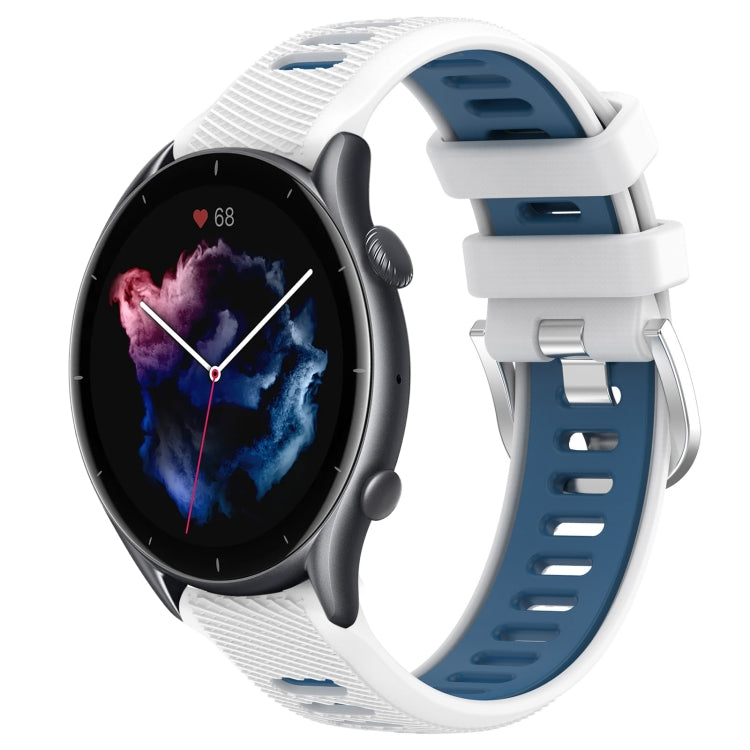 Correa de Reloj Amazfit 3 22mm silicona textura cruzada hebilla acero (Blanco + Azul)