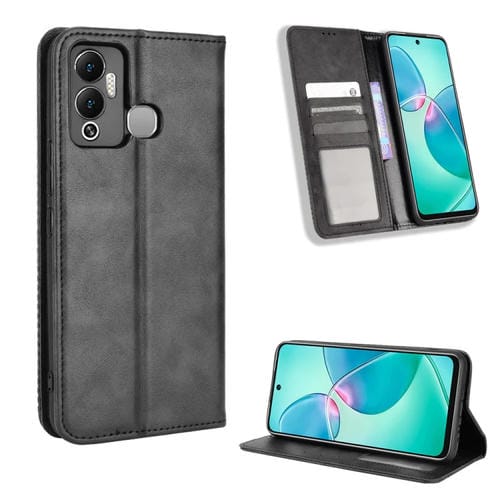 Funda de Cuero con Hebilla Magnética para Infinix Hot 12 Textura Retro (Negro)