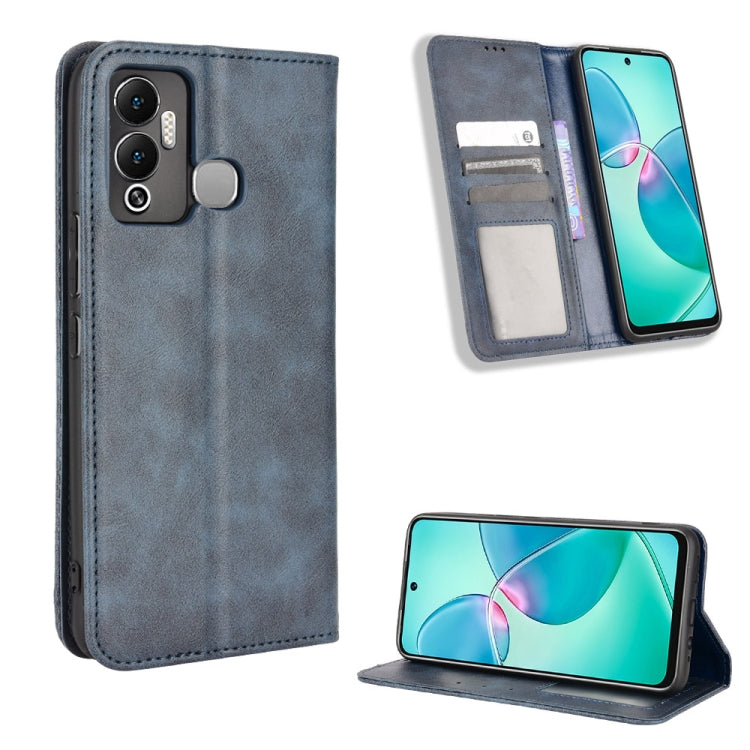 Funda de Cuero para Infinix Hot 12 con Hebilla Magnética y Textura Retro (Azul)