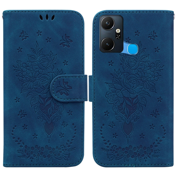 Estuche de Cuero En Relieve Butterfly Rose para Infinix Smart 6 Plus (Azul)