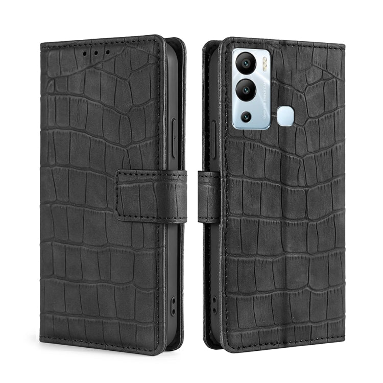 Funda de Cuero para Infinix Hot 12I Skin Feel Cocodrilo con Cierre Magnético (Negro)