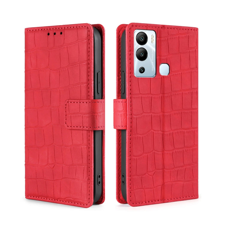 Funda de Cuero para Infinix Hot 20I Skin Feel Cocodrilo con Cierre Magnético (Rojo)