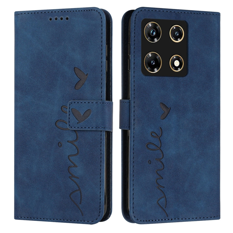 Funda de Cuero para Infinix Hot 30 Skin Feel con Patrón de Corazón (Azul)
