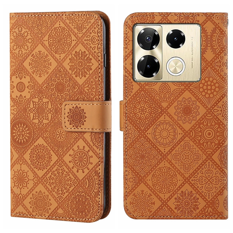 Funda de Cuero con Patrón en Relieve Estilo Étnico para Infinix Note 40 Pro (Marrón)