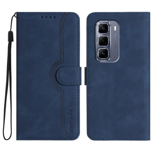 Funda de Cuero con Diseño de Corazón para Infinix Hot 50 Pro+ 4G (Azul)