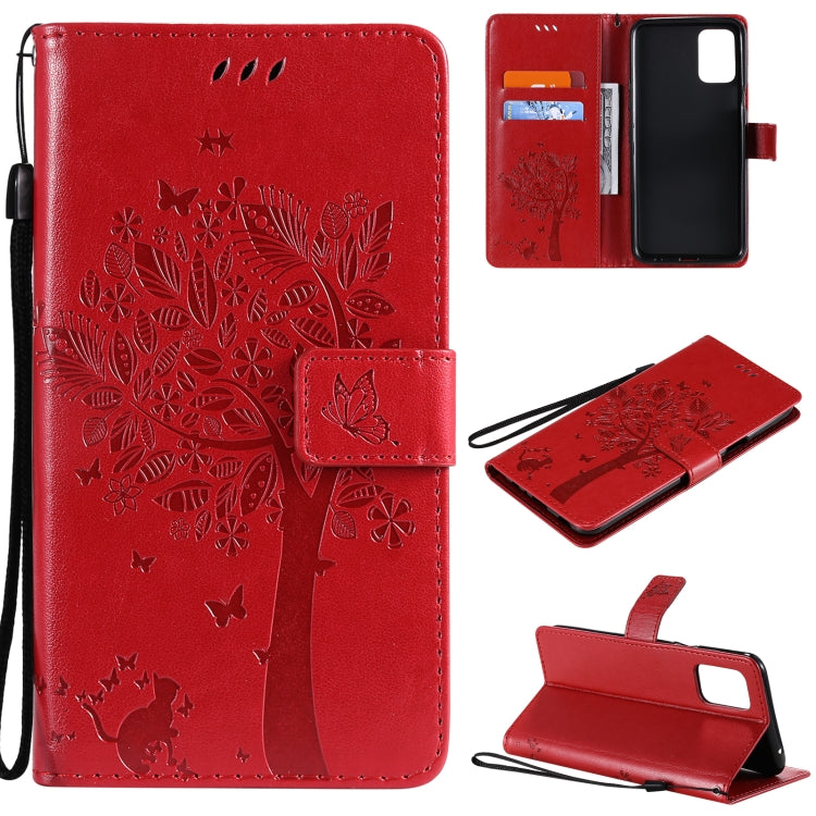 Funda Cuero PU LG K92 5G Árbol y Gato con Soporte, Ranuras y Cordón (Verde)
