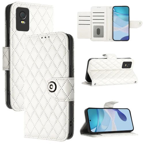Funda para Teléfono TCL 403 Cuero con Tapa Textura Rómbica y Cordón (Blanco)