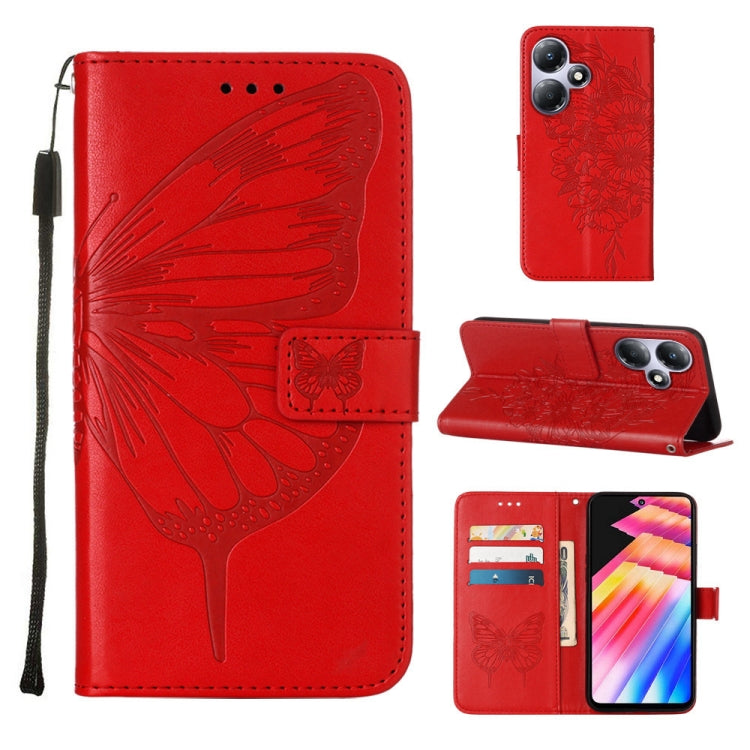Estuche para Infinix Hot 30 Play X6835 de Cuero con Mariposa en Relieve (Rojo)