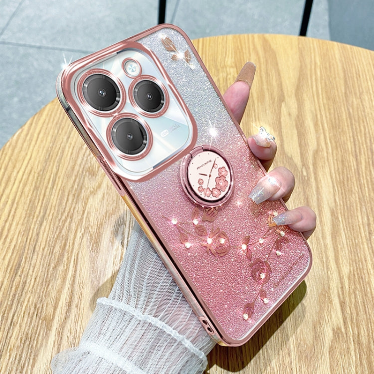 Estuche para Infinix Hot 40 con Anillo de Flor Inmortal y Brillo Degradado (Rosa)