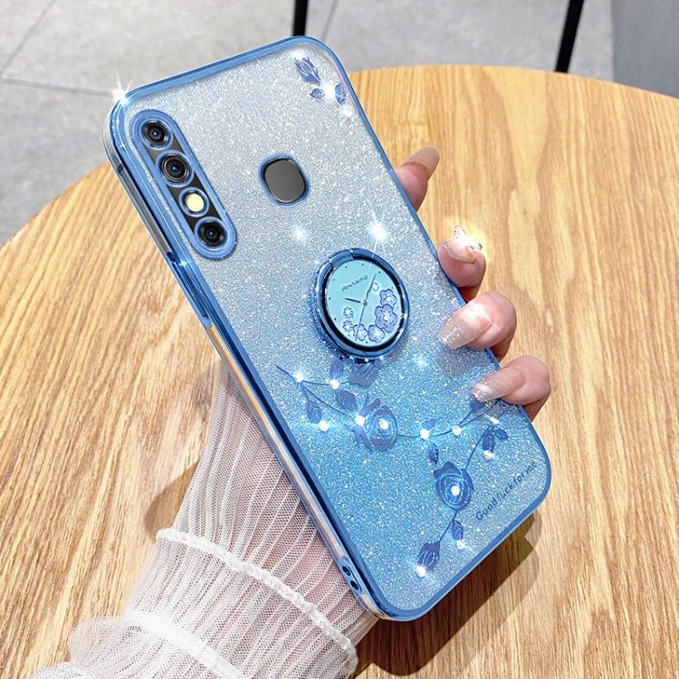 Estuche para Infinix Hot 9 Play con Anillo de Flor Inmortal y Brillo Degradado (Azul)