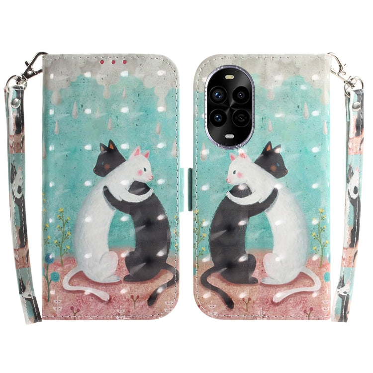 Funda de Cuero con Tapa Horizontal 3D para Huawei Nova 13 Pro (Gato Blanco y Negro)