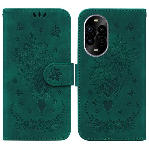 Funda de Cuero con Relieve Mariposa y Rosa para Huawei Nova 13 Pro (Verde)