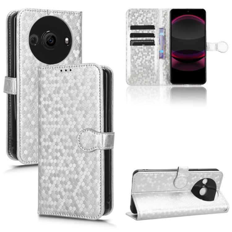 Funda de Cuero para Sharp Aquos R8 Pro con Textura Honeycomb Dot (Plata)