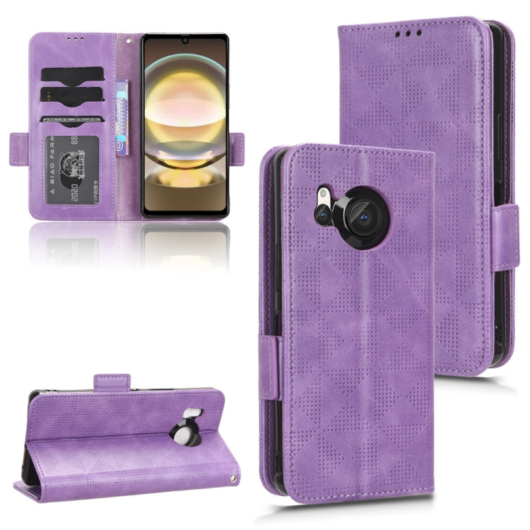 Funda de Cuero para Sharp Aquos R8 con Patrón de Triángulo Simétrico (Púrpura)