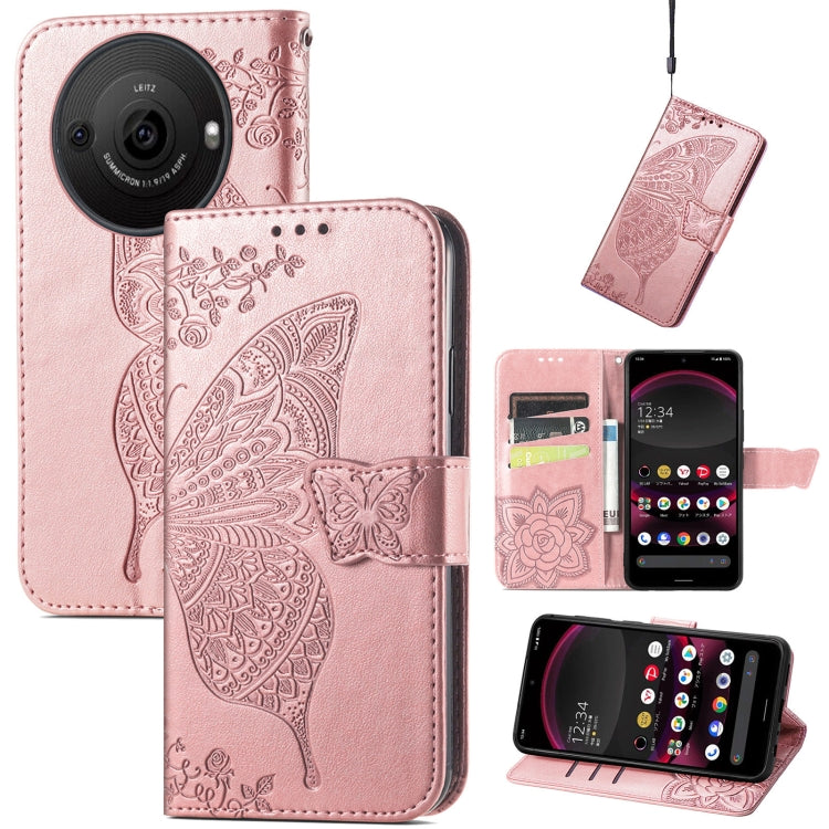 Estuche para Sharp Aquos R8 Pro Butterfly Love Flower de Cuero en Relieve (Oro Rosa)