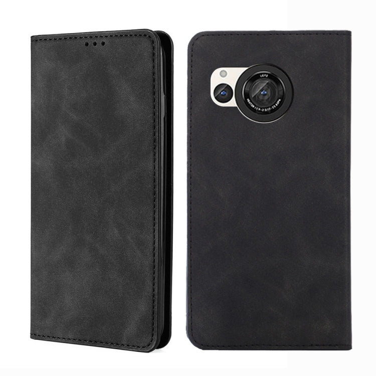 Funda de Cuero Magnética para Sharp Aquos R8 Pro Sh-51 con Sensación de Piel (Negro)