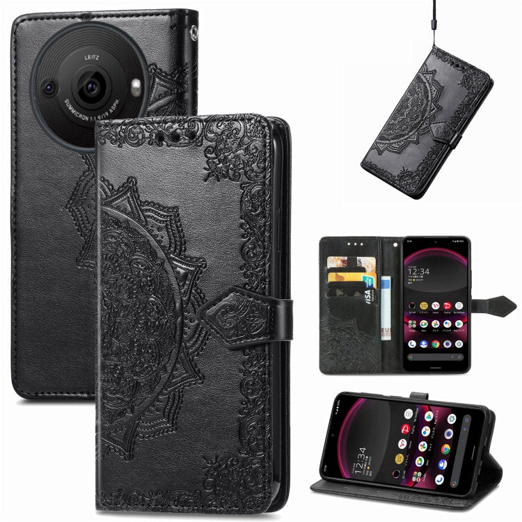 Funda de Cuero para Sharp Aquos R8 Pro Mandala Flower en Relieve (Negro)