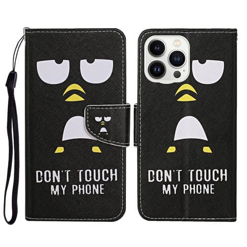 Funda de Cuero con Tapa para iPhone 16 Pro con Dibujo Color 3D (Pingüinos)