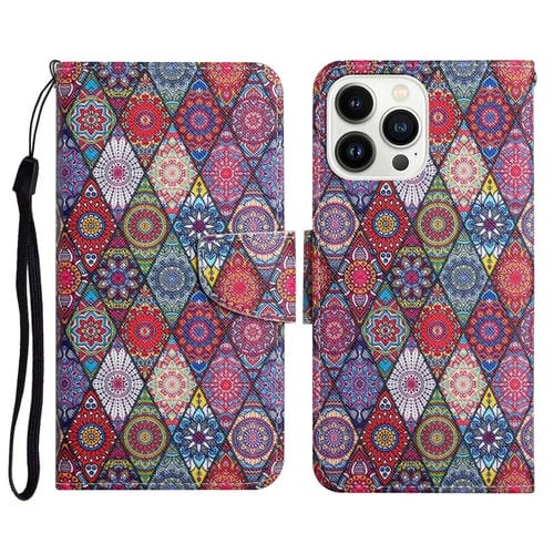 Funda de Cuero con Tapa para iPhone 16 Pro Dibujo Color 3D (Caleidoscopio)