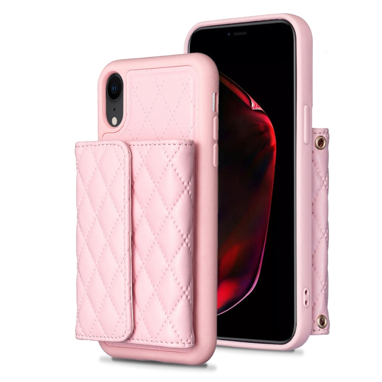 Estuche de Teléfono para iPhone Xr Cuero Rómbico con Billetera Horizontal (Rosa)