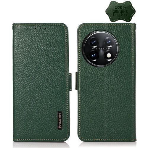 Funda para OnePlus 11 Khazneh Side-Magnetic Litchi Leather con RFID (Verde)