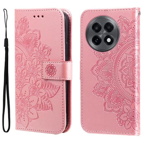 Funda de Cuero con Relieve Flores Siete Pétalos para OnePlus 13R Ace 5 Pro (Oro Rosa)
