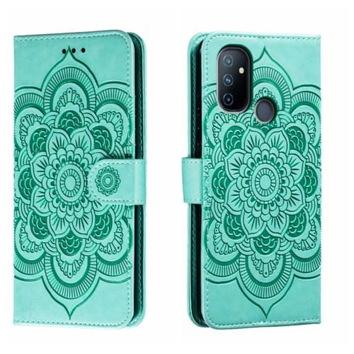 Funda de Cuero para OnePlus Nord N100 con Patrón en Relieve Sun Mandala (Verde)