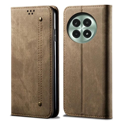 Funda de Cuero con Tapa Horizontal y Textura Vaquera para OnePlus 13 (Caqui)
