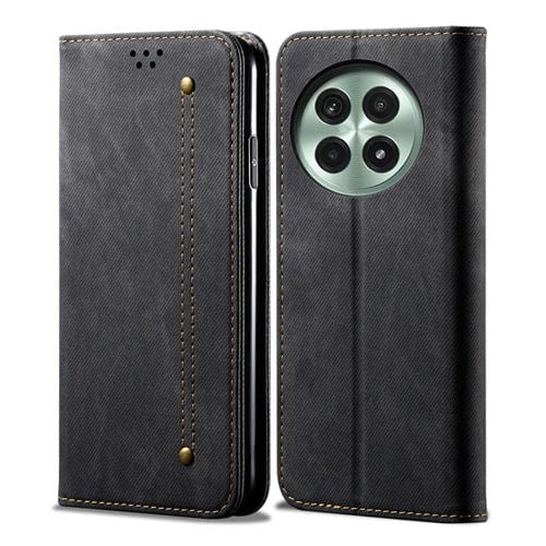 Funda de Cuero con Tapa Horizontal y Textura Vaquera para OnePlus 13 (Negro)
