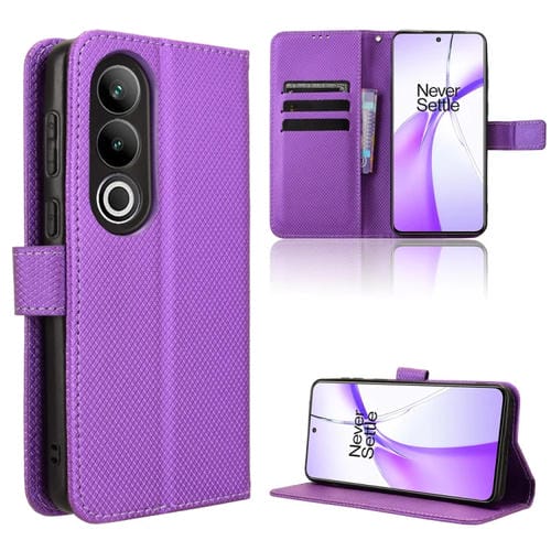 Funda de Cuero para OnePlus Nord Ce4 5G con Textura de Diamante (Púrpura)