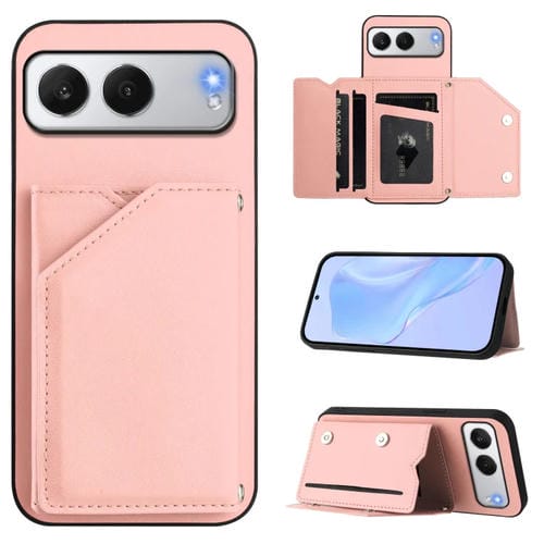 Funda para OnePlus Nord 4 con 4 Ranuras para Tarjetas y Correa para Muñeca (Rosa)