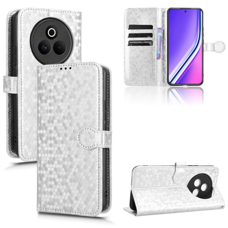 Funda de Cuero con Textura de Puntos de Panal para Realme P3 Pro (Plateada)