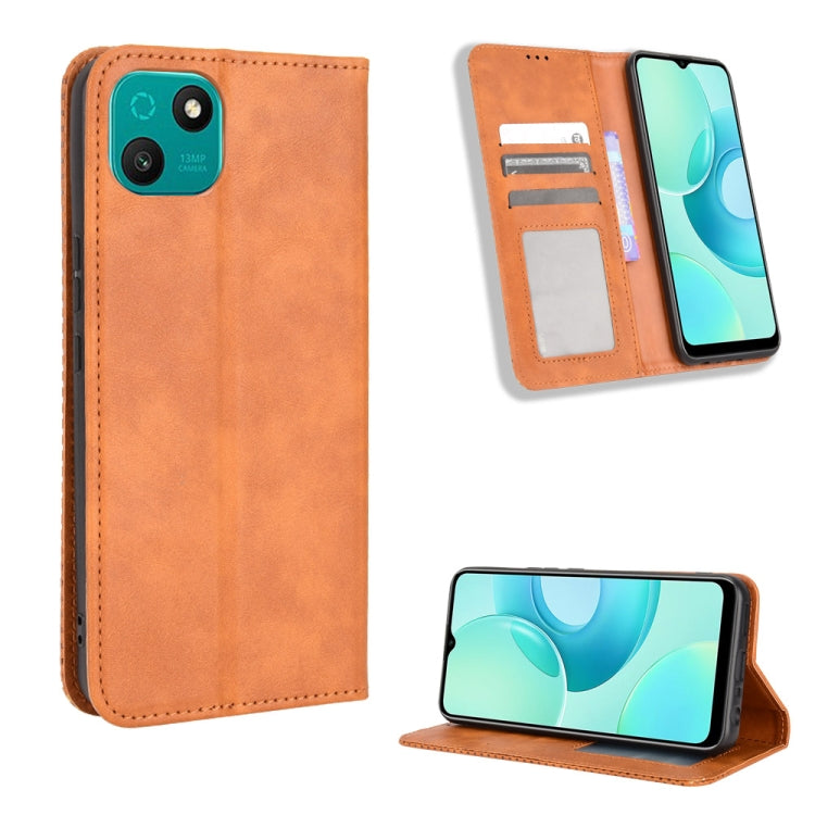 Funda de Cuero con Hebilla Magnética para Wiko T10 Textura Retro (Marrón)