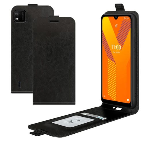 Estuche Protector de Cuero Wiko Y62 R64 Flip Vertical con Ranuras y Marco (Negro)