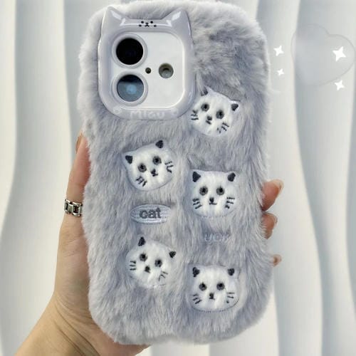 Funda de Silicona Cobertura Total iPhone 16 Diseño Gato de Peluche (Gris)