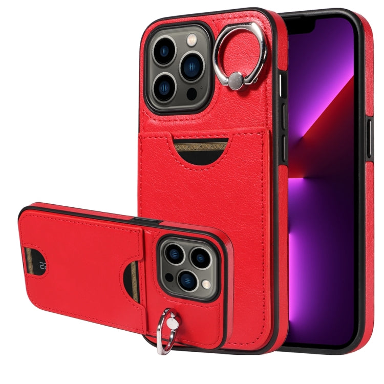 Funda para Teléfono iPhone 13 Pro con Soporte para Anillo y Ranura para Tarjeta (Rojo)