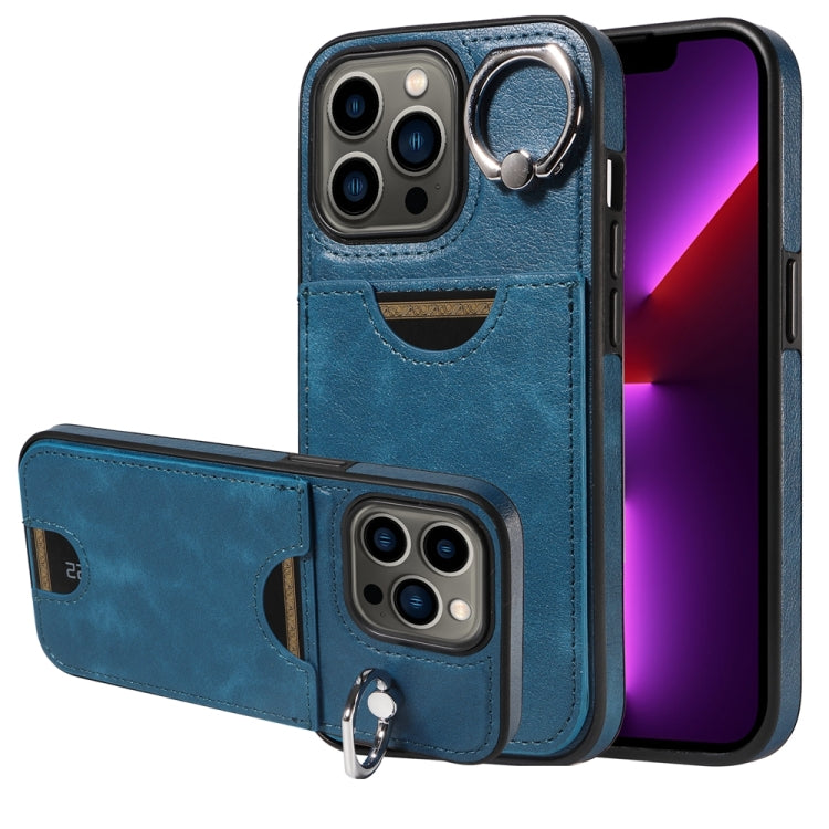 Funda para Teléfono iPhone 13 Pro con Soporte para Anillo y Ranura para Tarjeta (Azul)