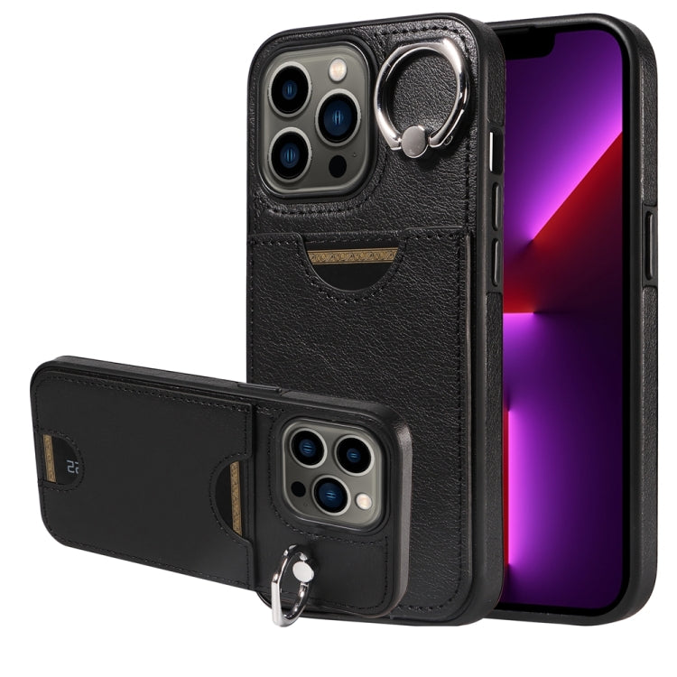 Funda para Teléfono iPhone 13 Pro con Soporte para Anillo y Ranura para Tarjeta (Negro)