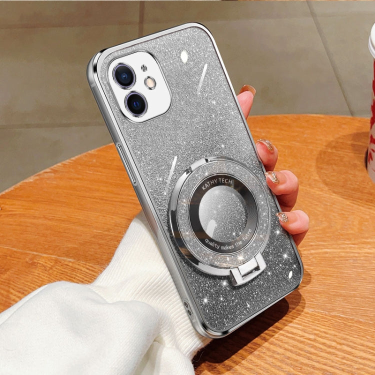 Funda de teléfono TPU con soporte redondo y purpurina degradada para iPhone 11 (Plateada)