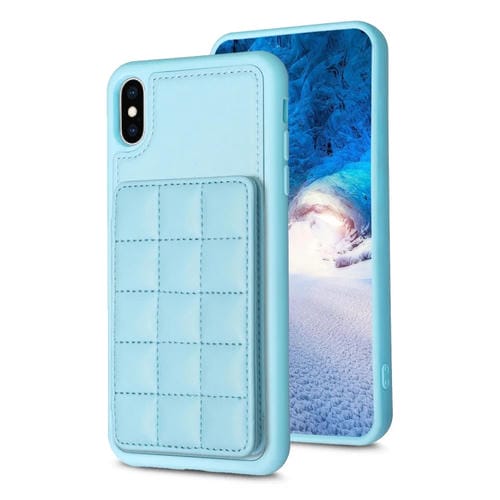 Funda para Teléfono iPhone Xs X Grid Ranura para Tarjeta con Soporte (Azul)